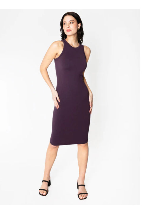 C’est Moi Natural Clothing Co. Mid length, form fitting ribbed dress. One Size, very stretchy, fits from small to large comfortably. 3 colours available. Racer back tank with wide straps, high cut. 80% Rayon from Bamboo, 17% Nylon, 3% Spandex.