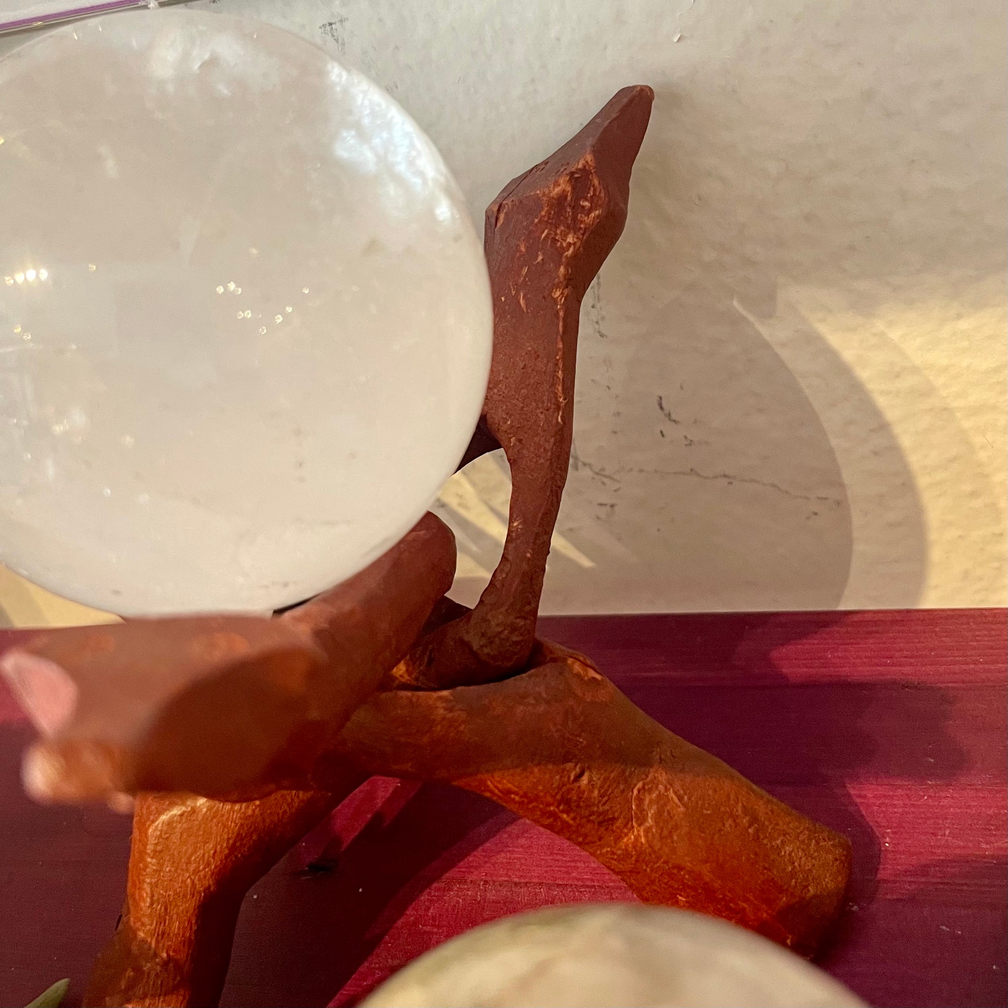 Carved interwoven snakes, wooden stands. Keep an eye out for the cute little snake eyes detail. Rustic finish.