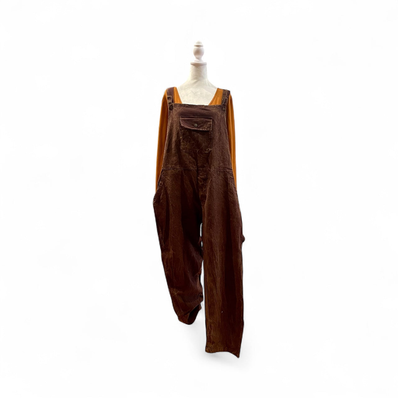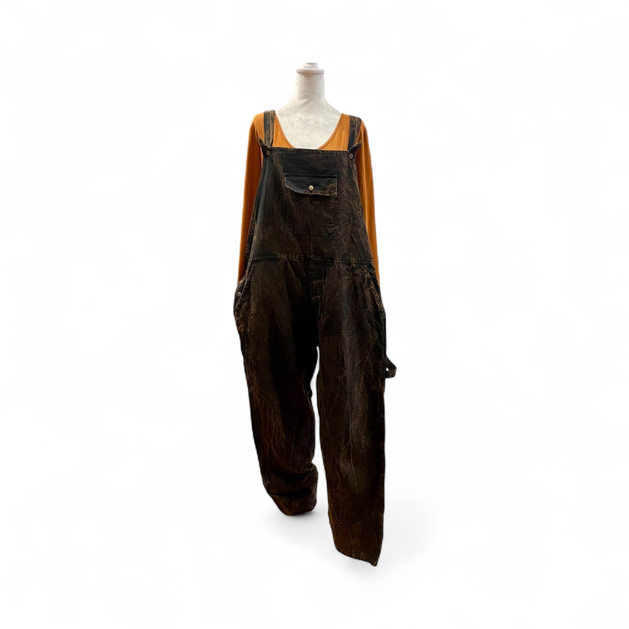 Similar to a denim but light weight.100% Cotton, made in Nepal. Acid Wash overalls, straight leg.