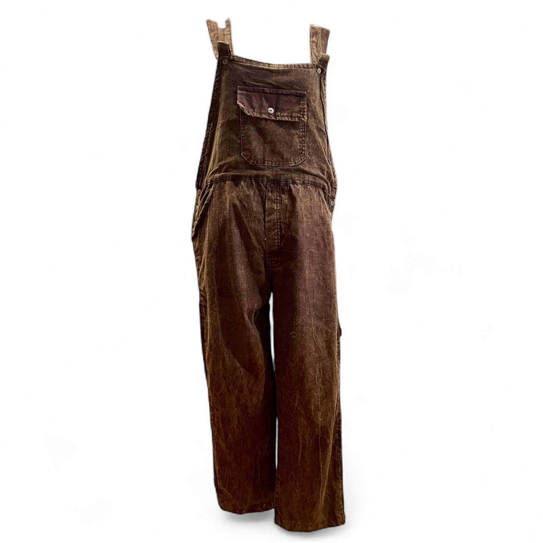 100% Cotton, made in Nepal. Acid Wash overalls, straight leg.