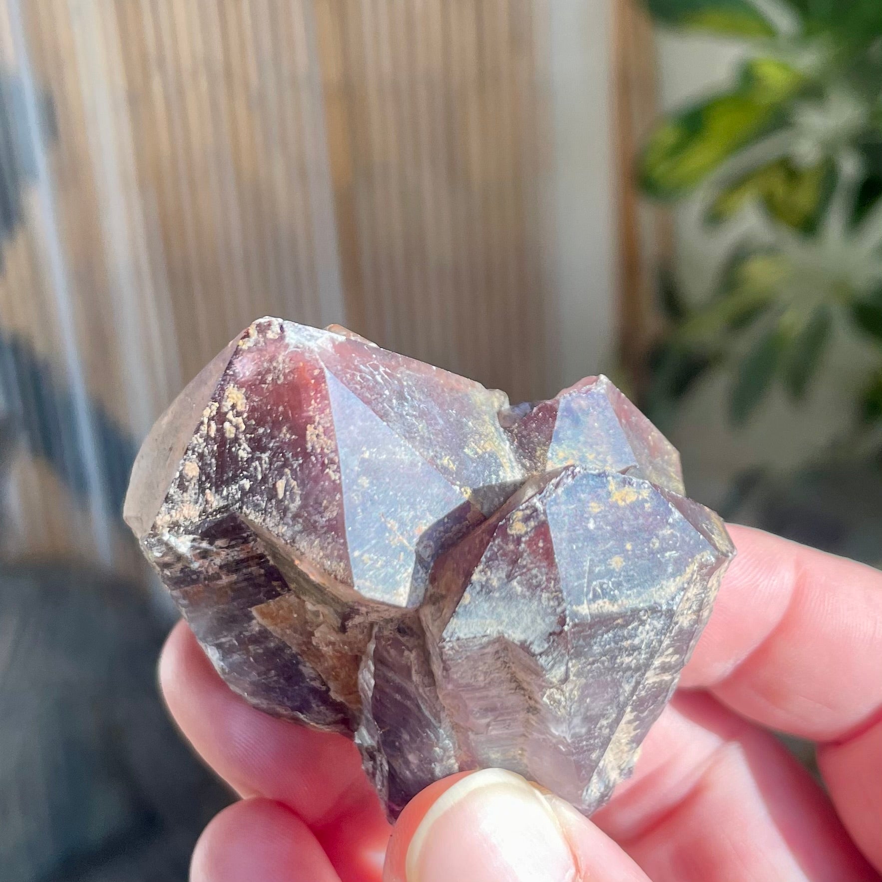 These are local, naturally terminated Amethyst clisters with all the signatures of auralite. Look for the stunning layers, the red hues of hematite and the deep midnight purple colour.