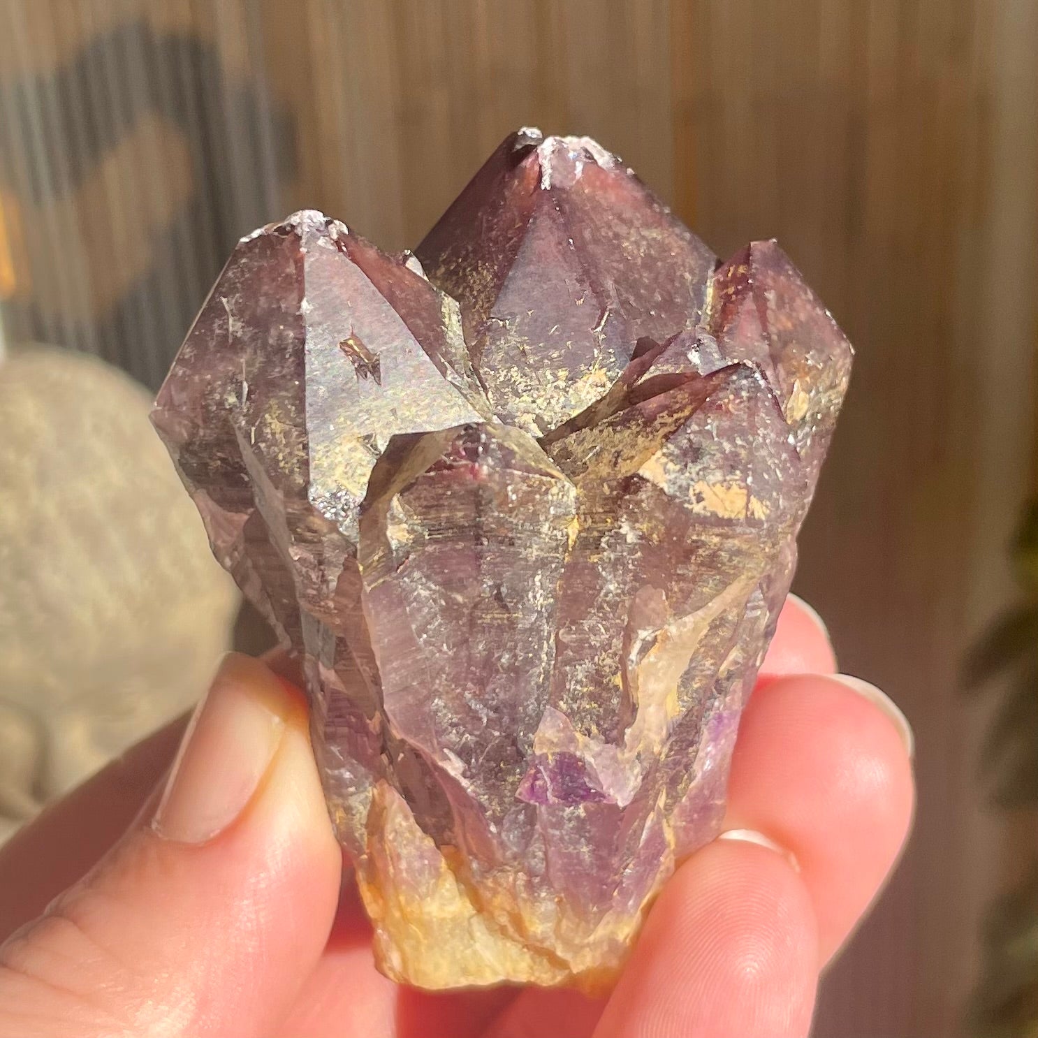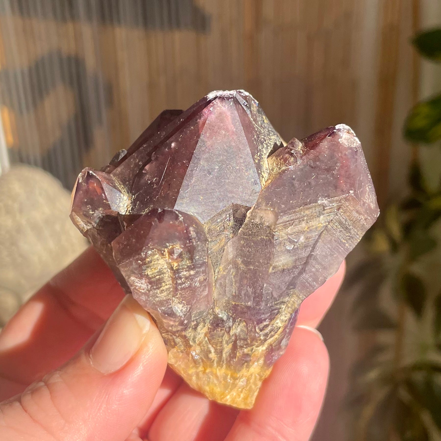 These are local, naturally terminated Amethyst clusters with all the signatures of auralite. Look for the stunning layers, the red hues of hematite and the deep midnight purple colour.
