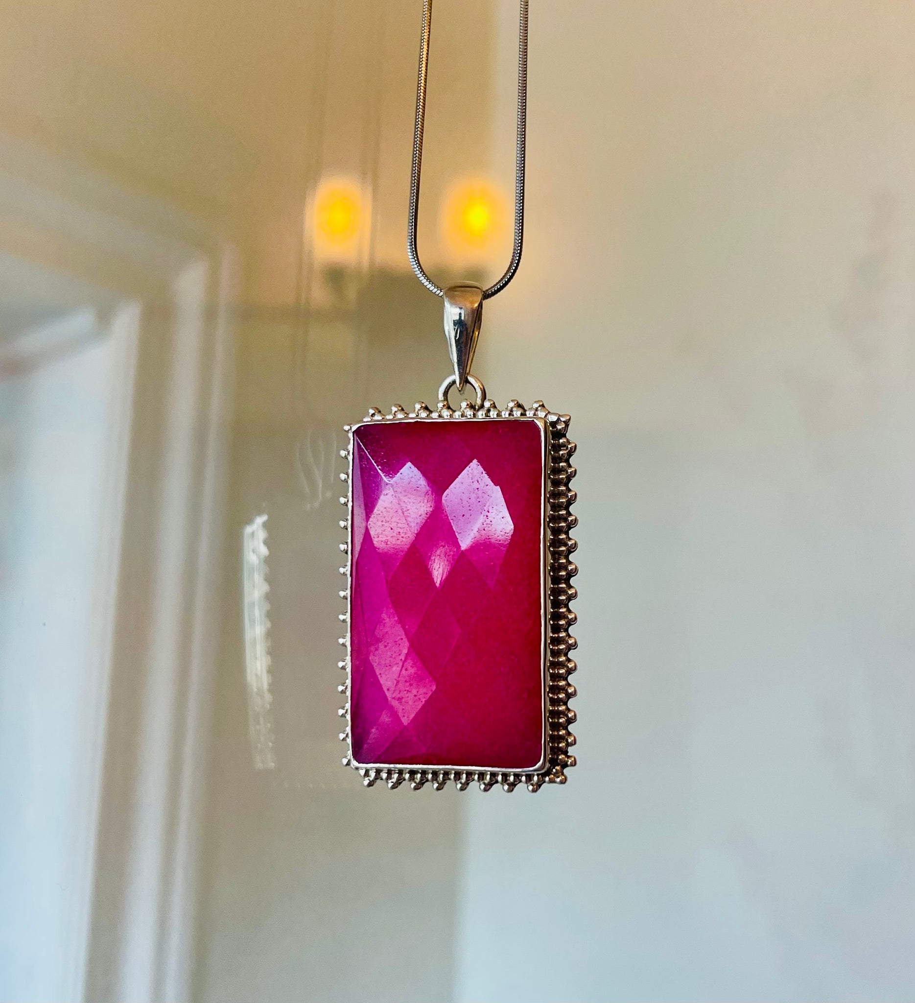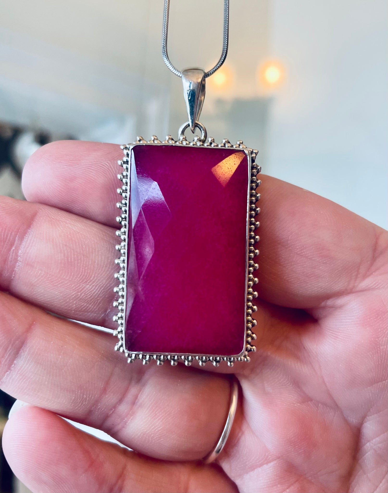 Stunning Large ruby pendant, this piece is 1”x1.5” rectangle cut and faceted Ruby.