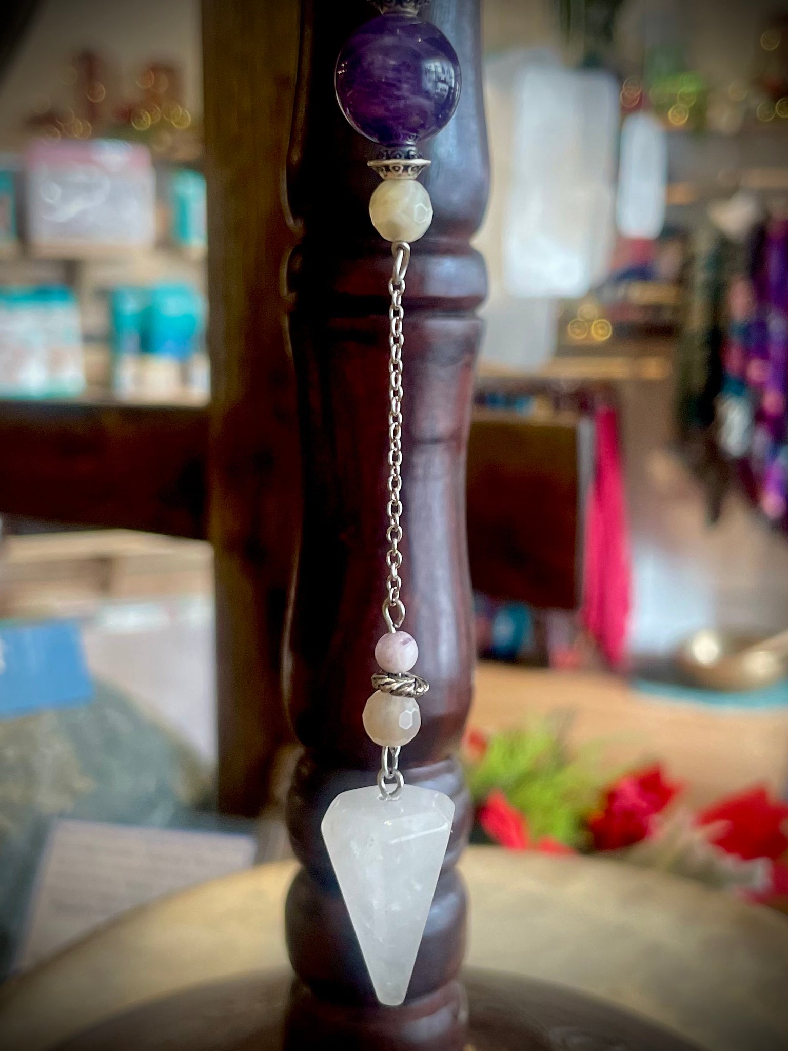All about the Intuition. Quartz Crystal with Amethyst and Moonstone to enhance clarity and boost your mood.