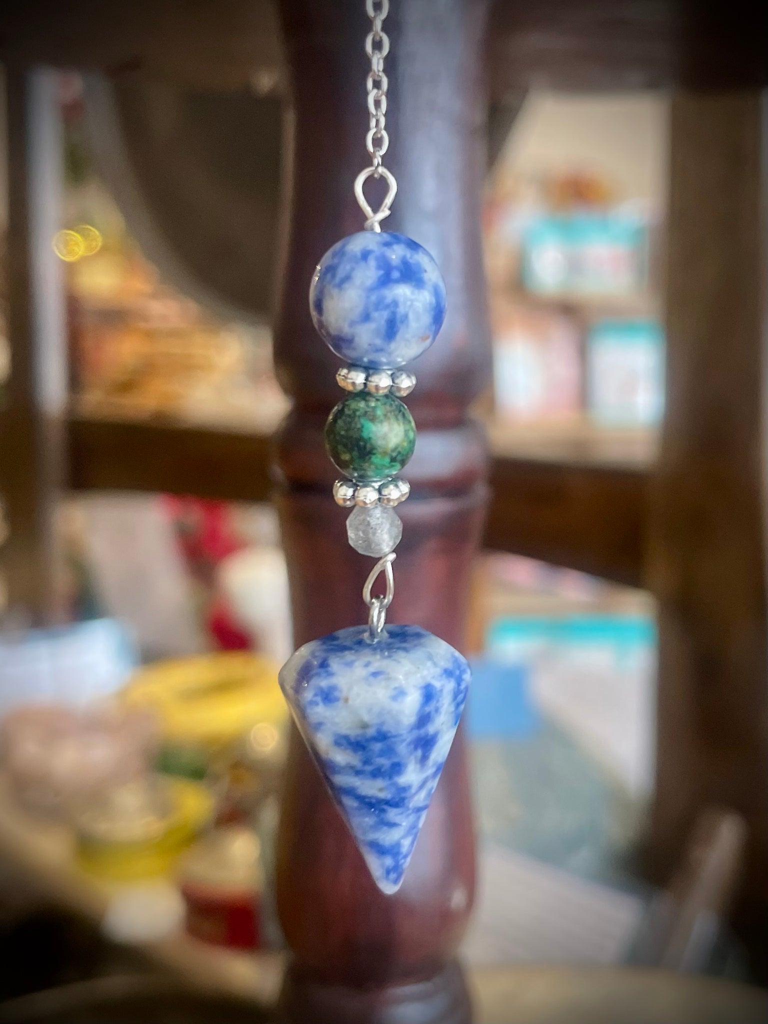 Sodalite is one of the densest and most grounded of the dark blue stones and is superb for meditation and deep journeying. It brings insights into the self and an honest evaluation of one’s motivations, strengths, weaknesses, gifts and patterns of destiny. It dispels mental confusion, stilling the mind to allow new information to be received, and brings an enlightened perspective on life. Sodalite increases consciousness, idealism, and striving for the truth, and eliminates guilt and fears better than any other stone. It helps one own and verbalize one’s true feelings and to stand up for oneself. Sodalite is an ideal stone for those who are oversensitive, defensive, impulsive, or prone to anxiety or panic attacks to stabilize the mind and allow a shift from emotional to rational.